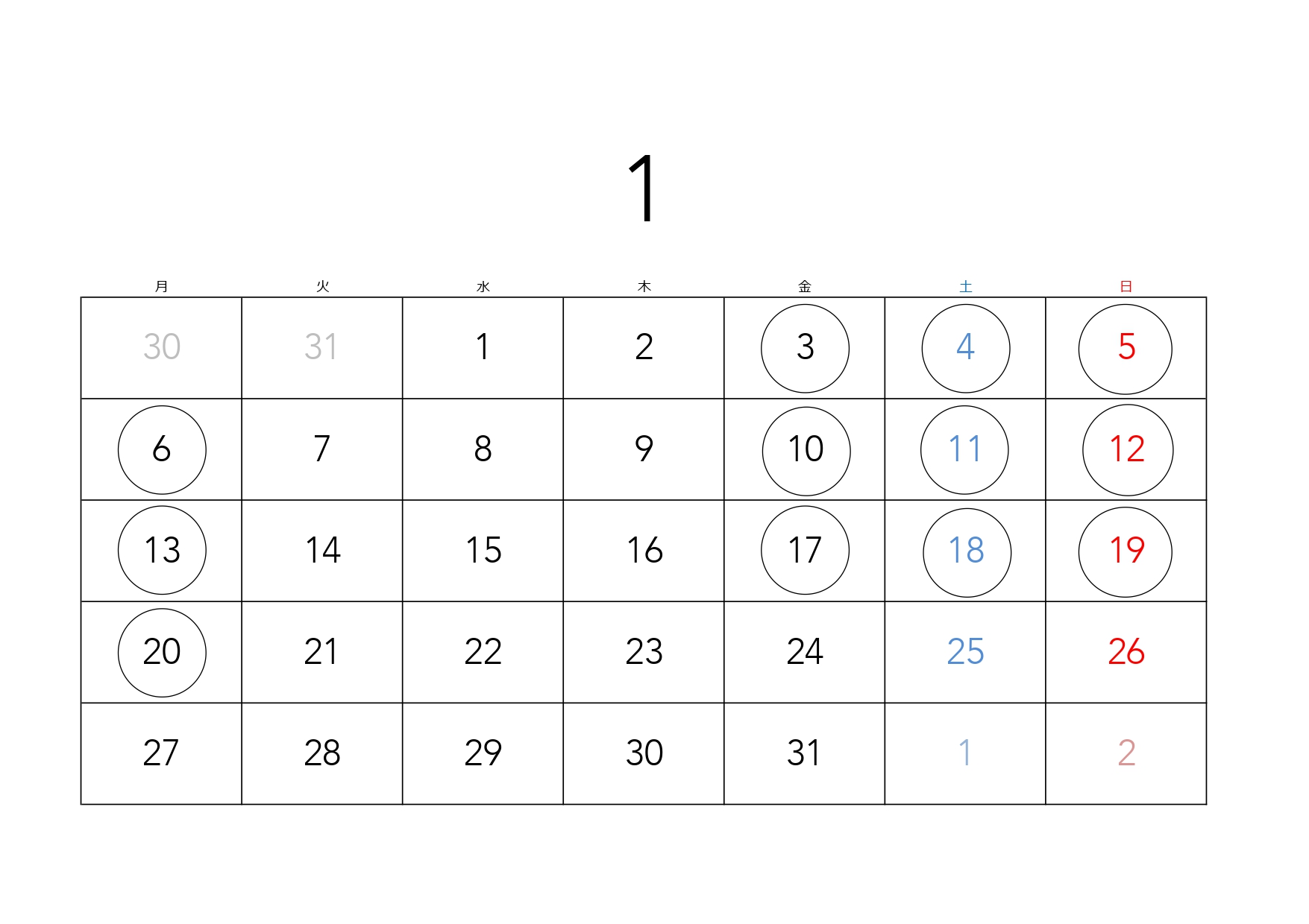 1月は、後半に1週間冬休みをいただきます。ご了承くださいませ。