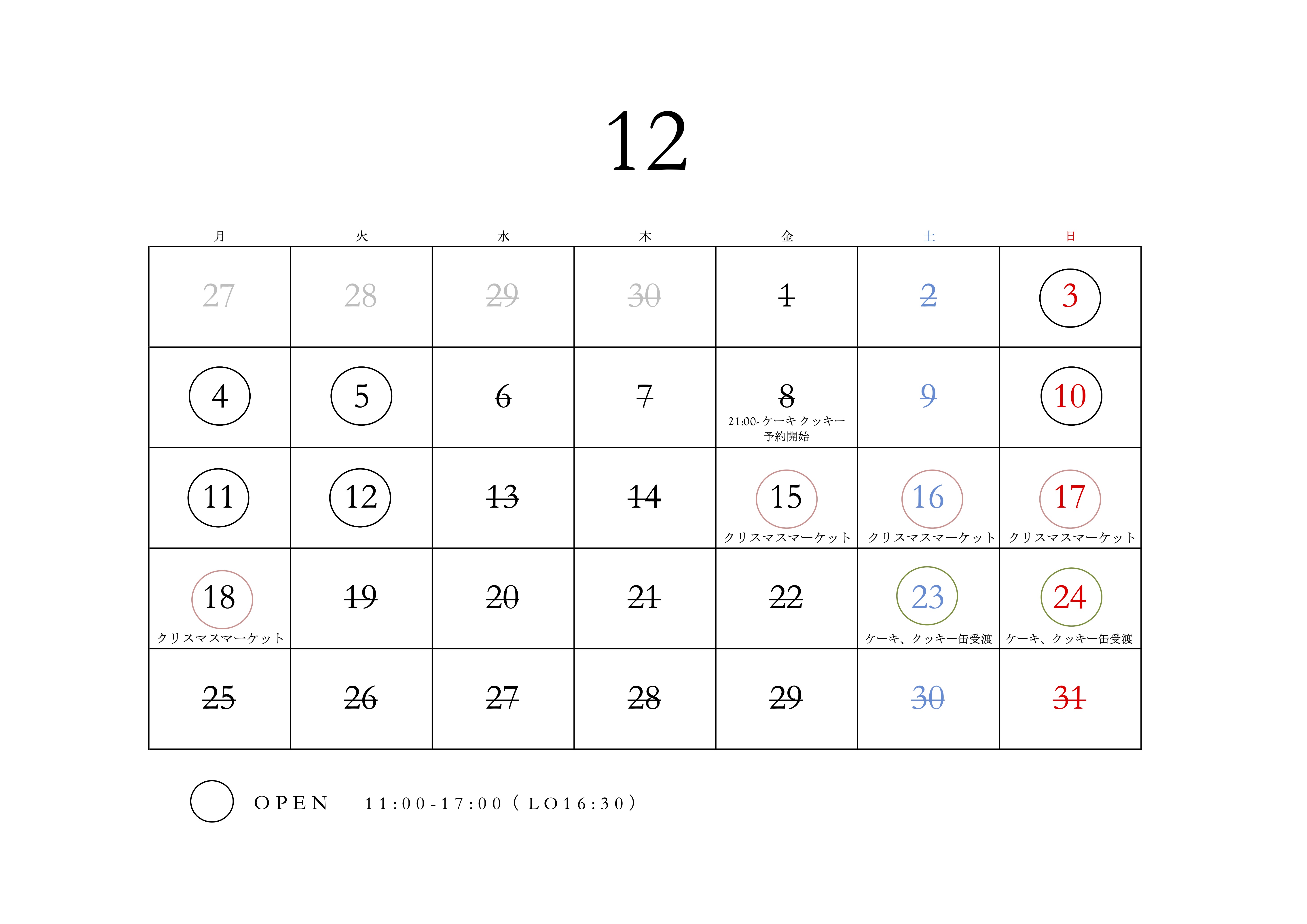 そして、23日と24日はクリスマスケーキとクッキー缶の受け渡し日となります。
